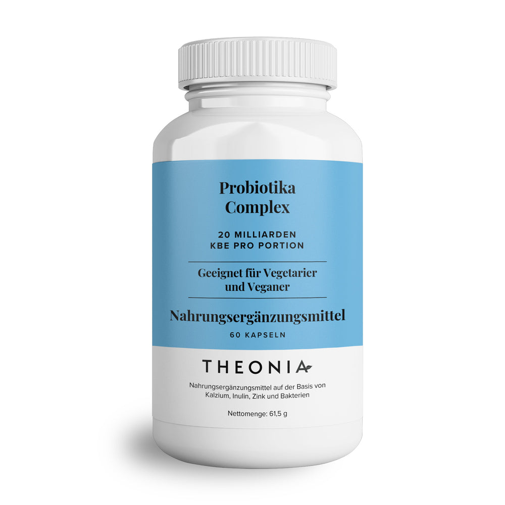 Bei Theonia glauben wir an Qualität statt Quantität, weshalb unser Probiotika Complex nur die hochwertigsten Bakterienstämme in professionell empfohlener Dosierung enthält. Jede Portion enthält 20 Milliarden KBE aus 7 probiotischen Stämmen, die erwiesenermaßen wirksam sind.